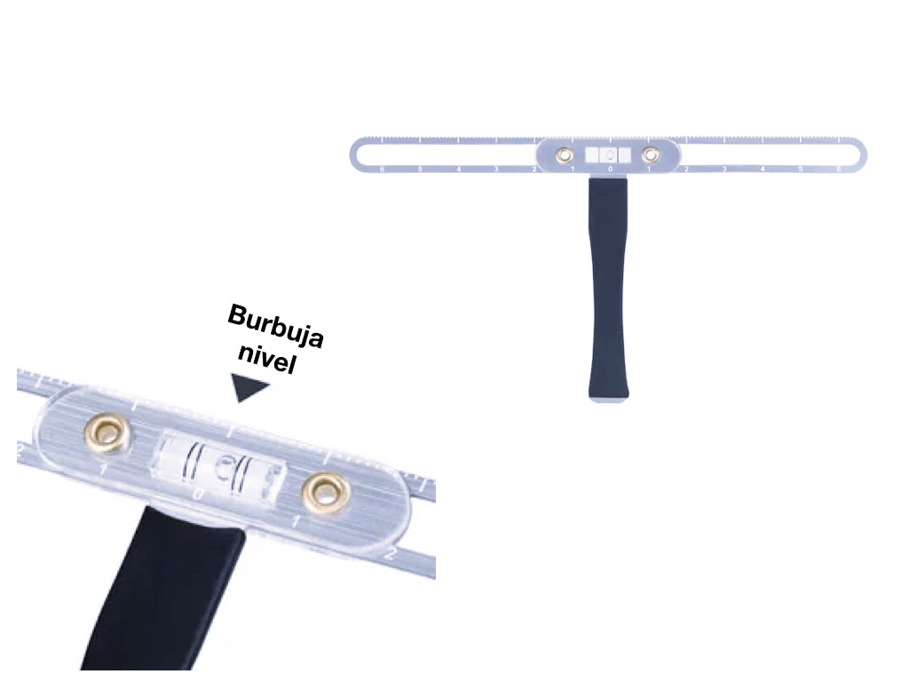Dispone de un nivel para verificar la correcta posición de ambas cejas.